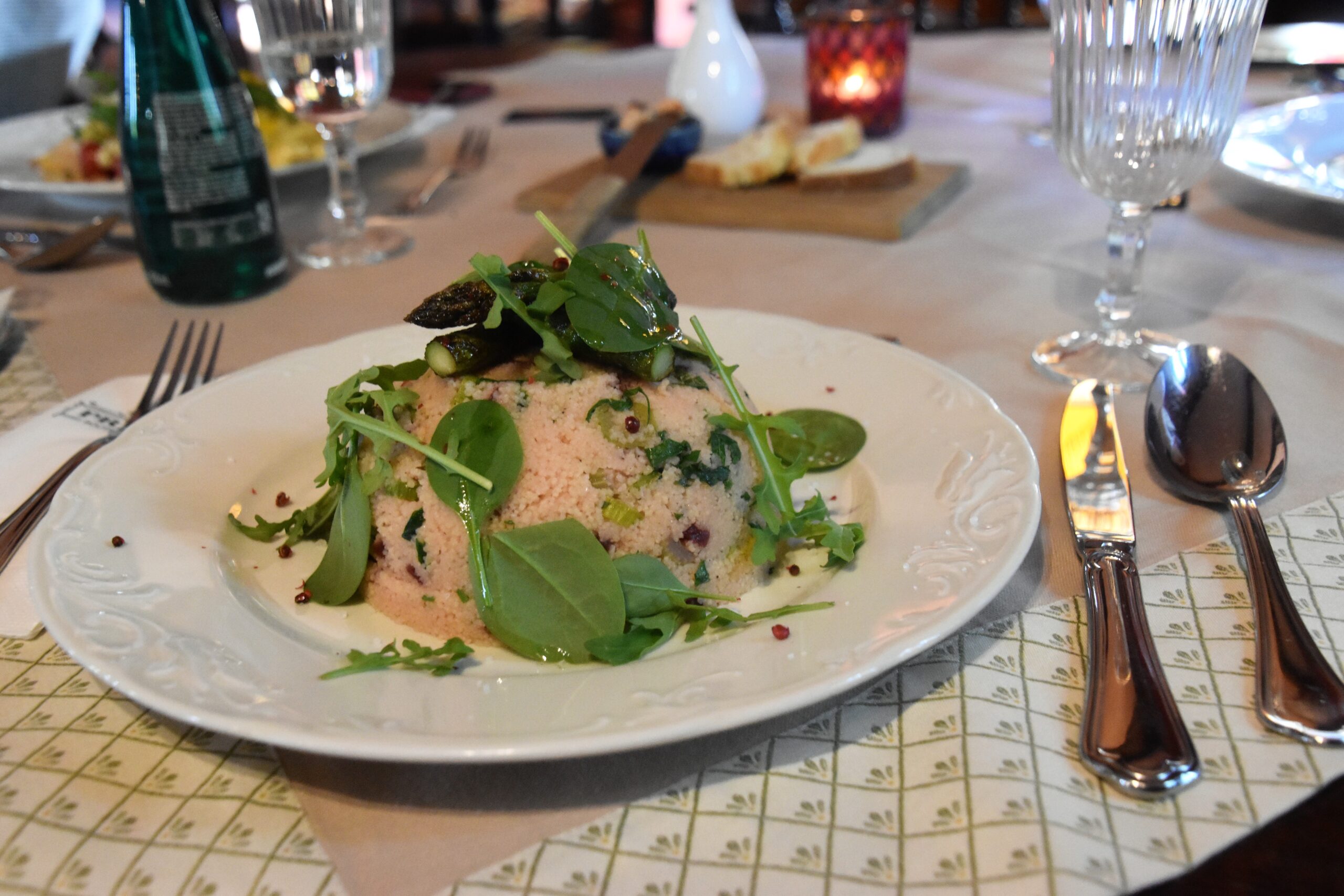 Hotel Pri mlyne v Lozorno – veceru som dohadovala priamo s kucharom. Poprosila som hocico veganske, co mali prave dostupne a dalo sa pripravit co najrychlejsie, aby som nemusela dlho cakat. Nakoniec mi kuchar pripravil kus kus s cviklou, sparglou a zelerom ozdobene spenatom. Chcela som, aby mi rychlo pretravilo, kedze sme potom isli do wellness, tak som ochutnala iba 1 chod a nie viacero, ako v dalsich restauraciach. Chutovo skvele, takze verim, ze aj ine jedla by boli delikatne.