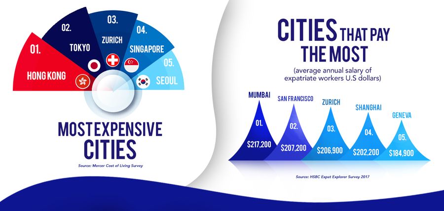 Expats in Mumbai draw the highest salary while ones in Hong Kong spend the most